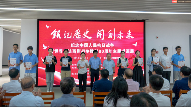 为深切缅怀抗战英烈、弘扬伟大抗战精神,激发广大青年学子爱国热情和民族使命感,由宣城校区党委、宣城市关工委联合主办的“铭记历史 开创未来”纪念中国人民抗日战争暨世界反法西斯战争胜利80周年主题书画展开幕式于9月18日在宣城校区展览馆举行。宣城市关工委主任丁绍东、宣城市关工委常务副主任沈伟,宣城校区党委副书记、管委会主任蒋传东,校区党委副书记、管委会常务副主任方留,校区纪委书记葛万锋,校区管委会副主任李友良等出席开幕式。