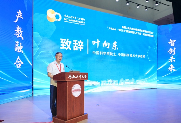 在开幕式环节,中国科学院院士、发展中国家科学院院士,中国科学技术大学教授叶向东代表专家学者致辞,向合工大建校80周年并取得辉煌成就致以祝贺,祝愿宣城市和合工大在未来的发展中,以宣城校区为纽带,携手创造科技创新活跃、人才集聚明显、产教融合深入、社会影响力广泛的教育合作新局面。