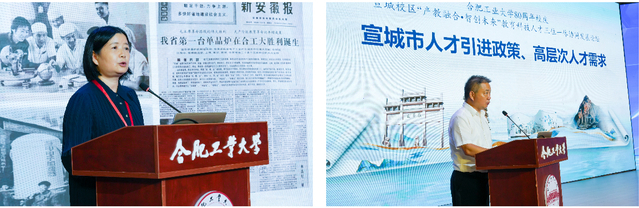 嵇文代表宣城市政府对合肥工业大学建校80周年表示热烈祝贺,向全校师生员工和广大校友表示诚挚问候,并向现场各位宣城籍的专家学者和在外硕士博士生发出邀约,携手共创宣城新未来。
